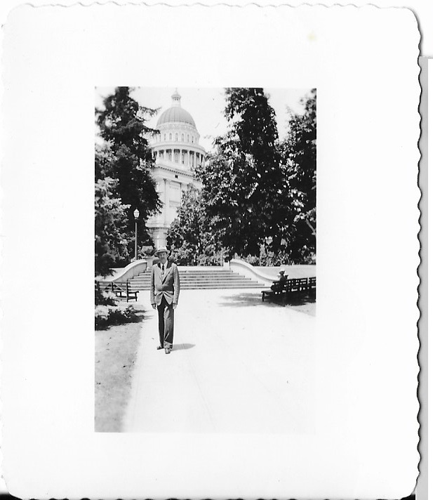 - Assemblyman Nelson Dilworth stands in Sacramento’s Capitol Park with the State Capitol behind him. (c. 1937-1944)