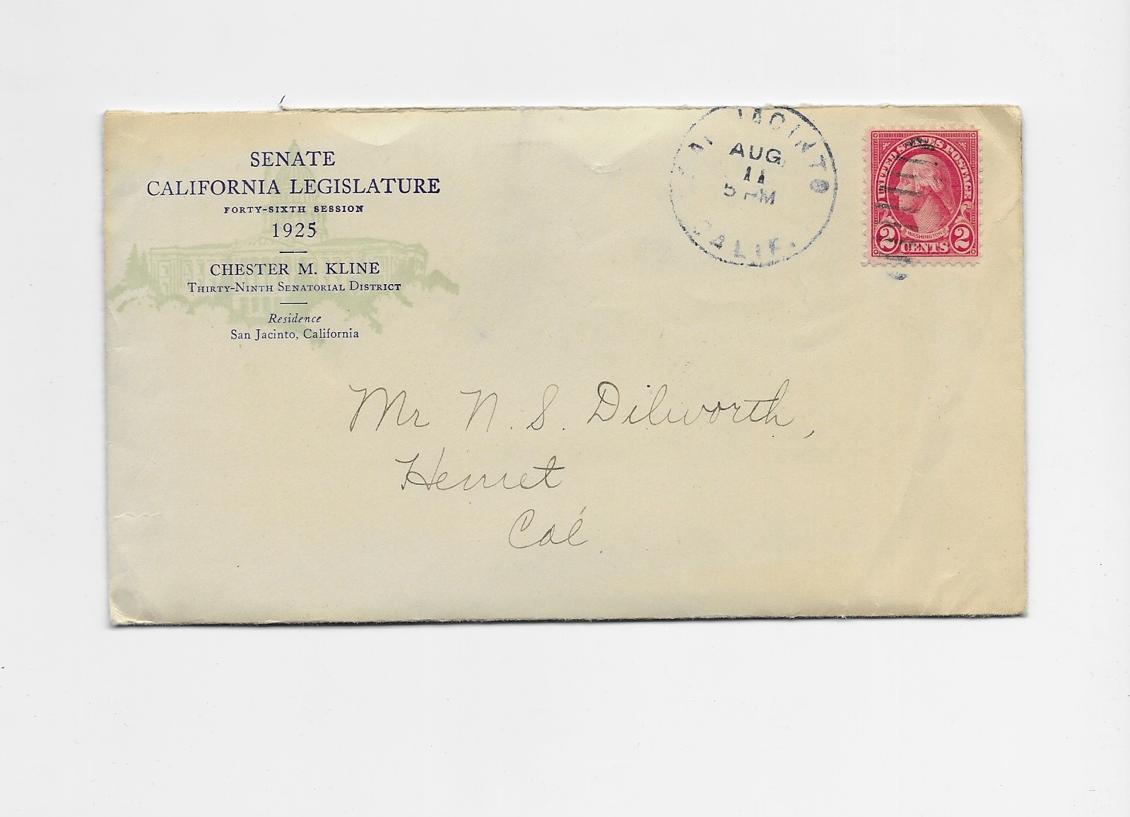 - An envelope addressed to Dilworth from Assemblyman Chester M. Kline (1925)