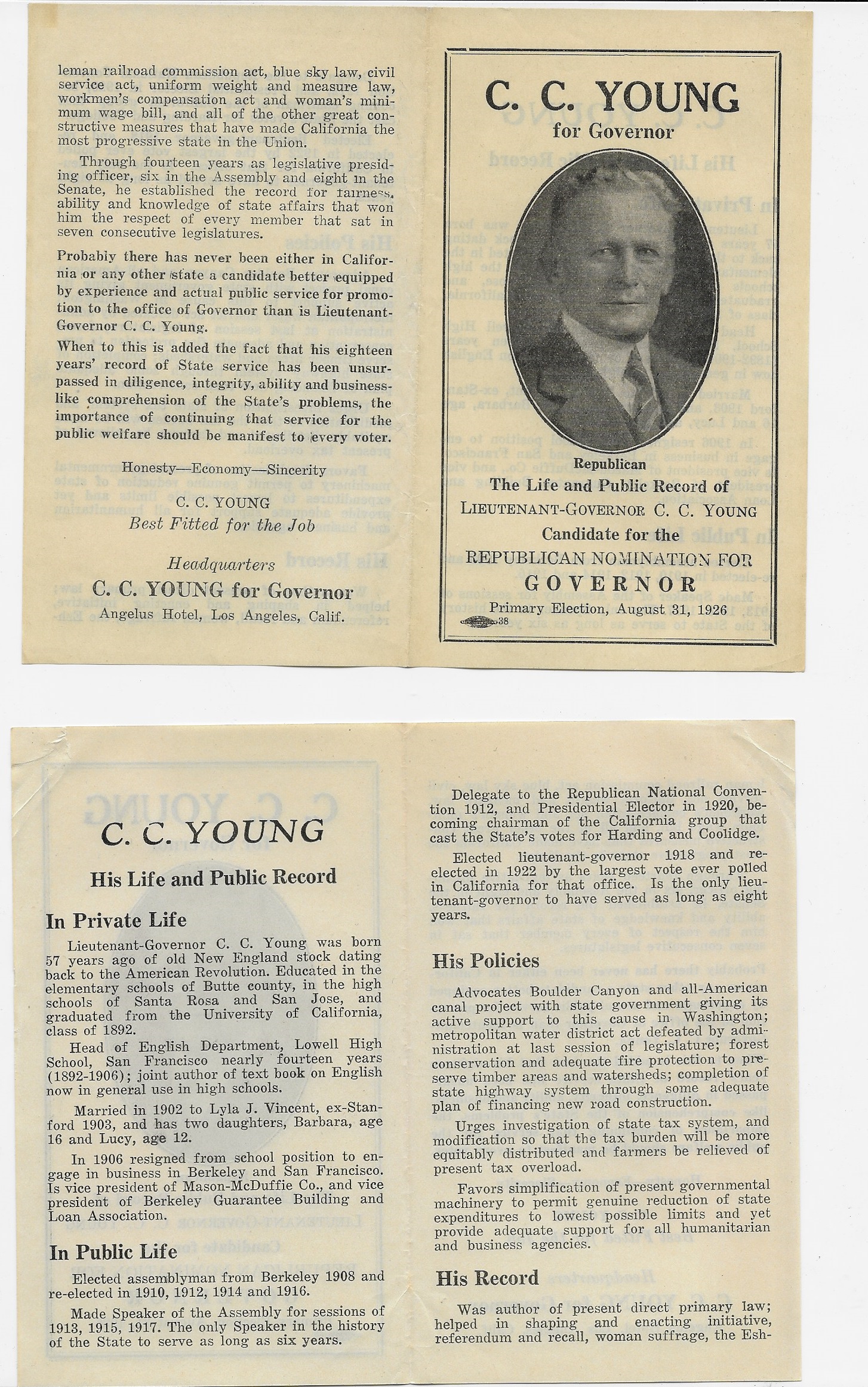- Campaign booklet used by the CC Young for Governor campaign (1926)