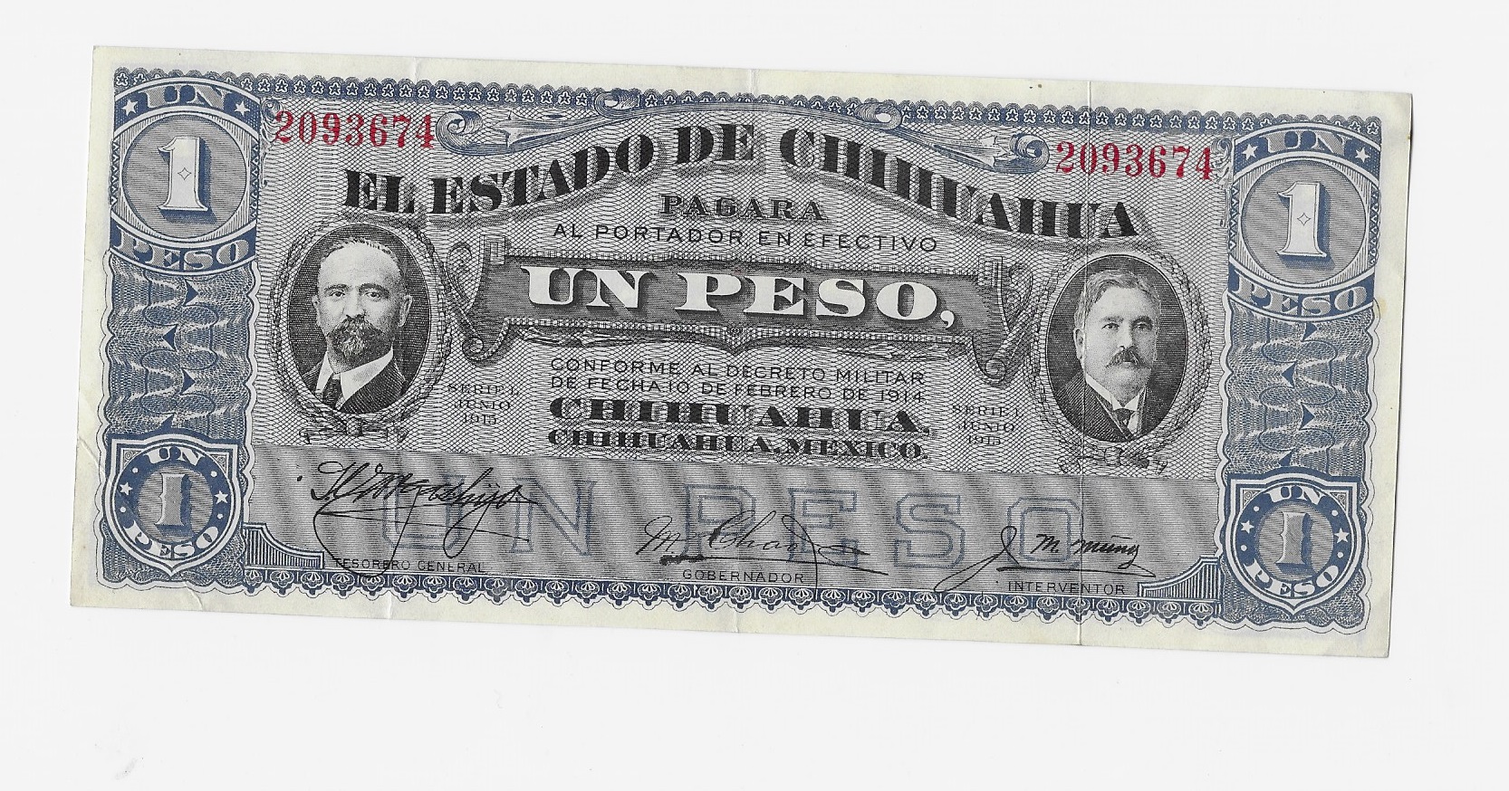 1915 Currency – “Un Peso de Chihuahua” (brought back to California by returning National Guard soldiers)