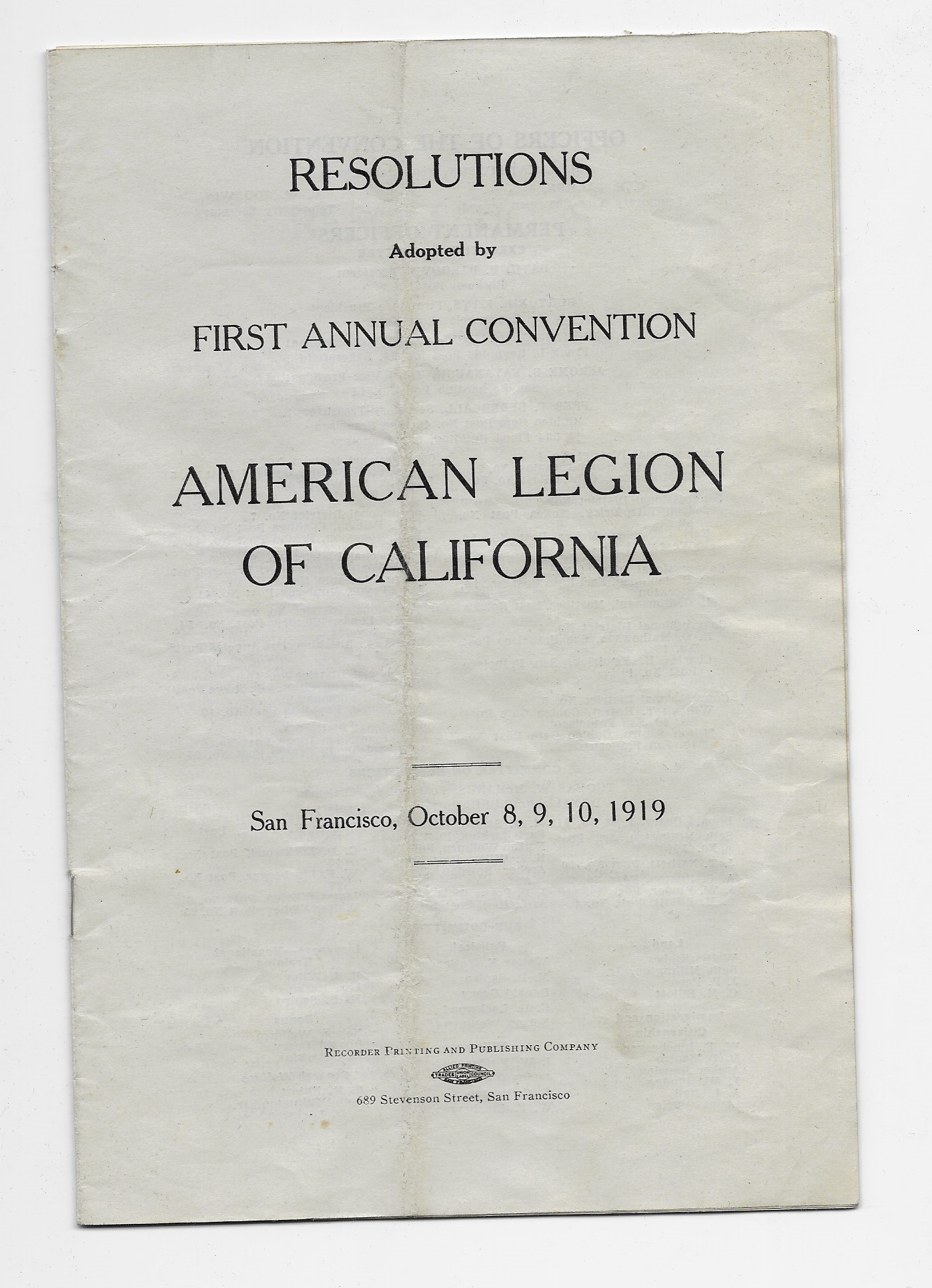 1919 (Oct 8) Booklet of Resolutions from the First American Legion Convention in California