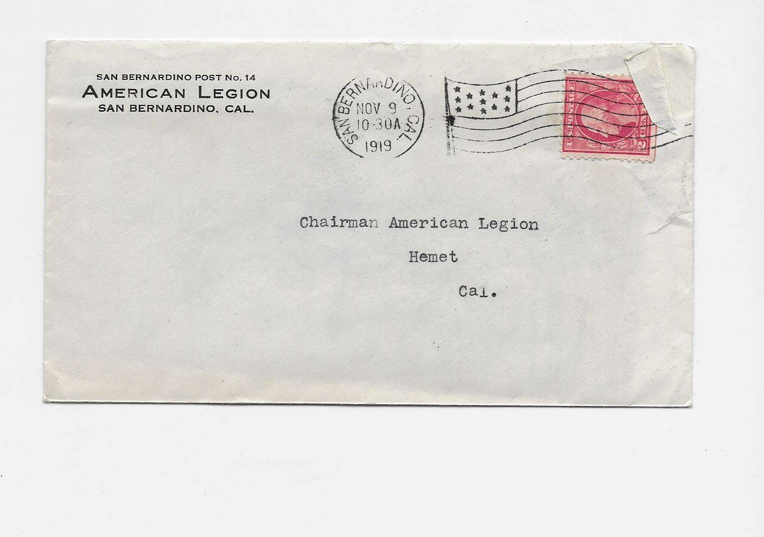 1919 (Nov 9) Envelope from San Bernardino American Legion Post