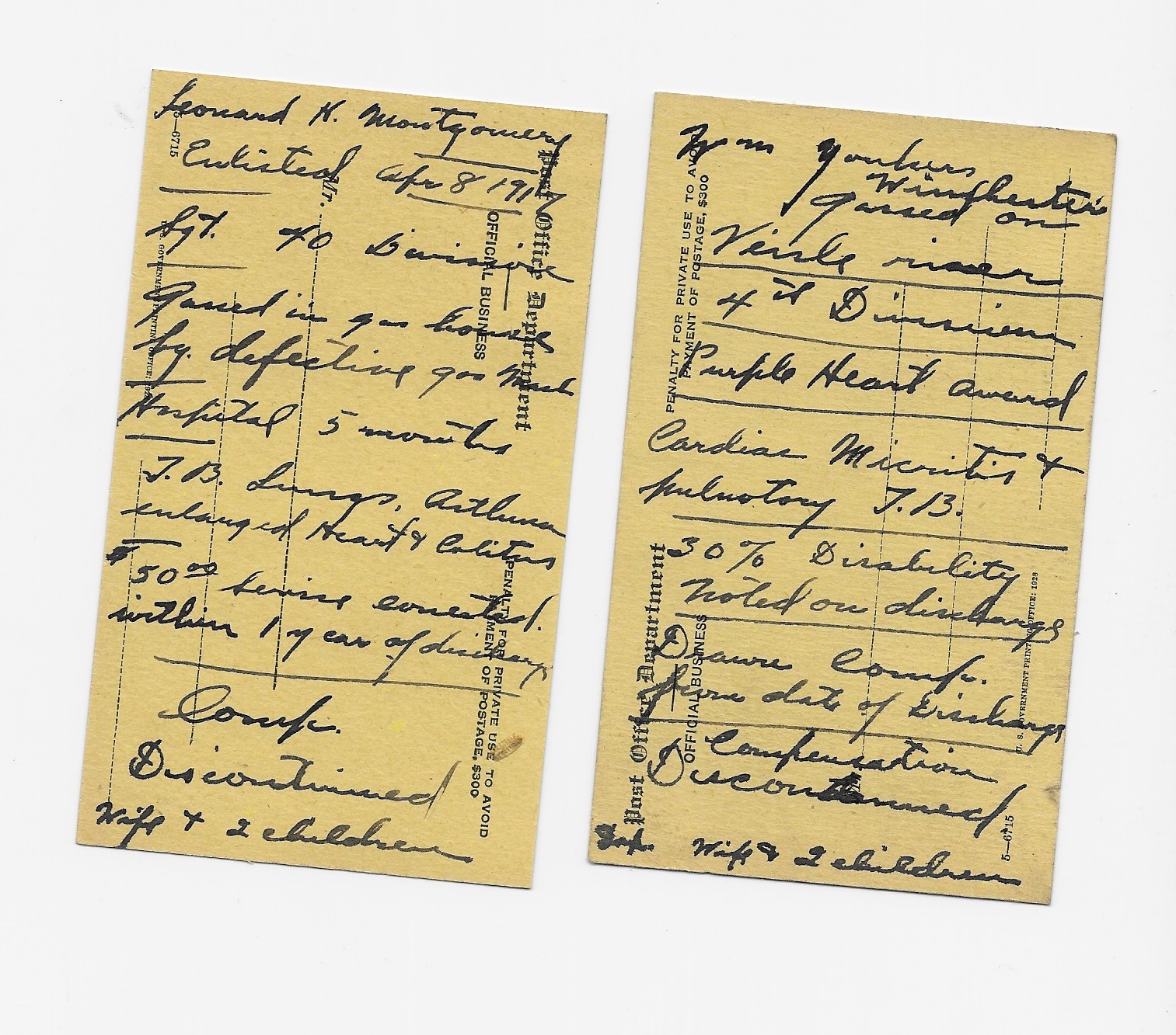 1920s Notes by Nelson Dilworth about injuries sustained by local veterans (Riverside County) during their service in WWI.