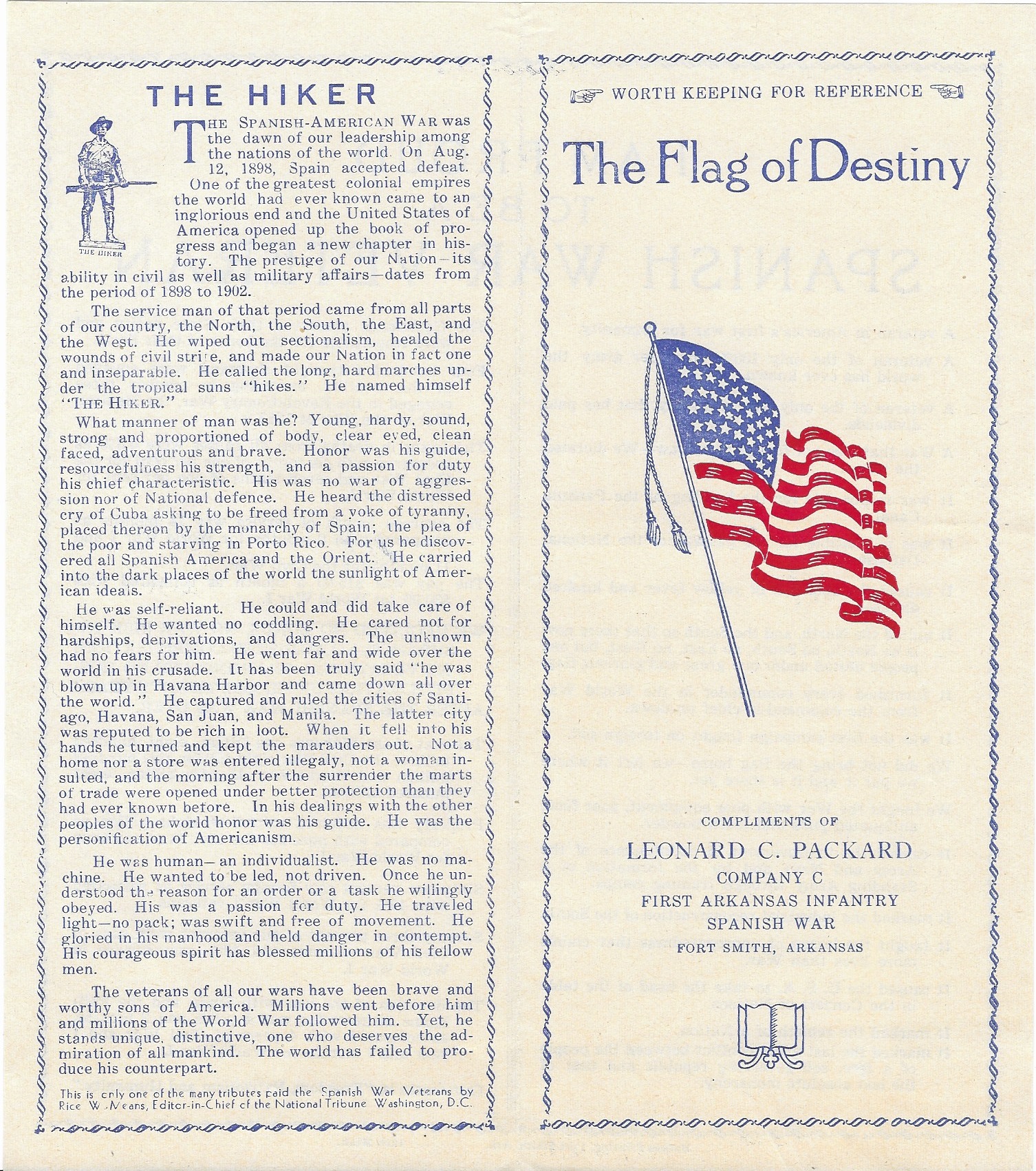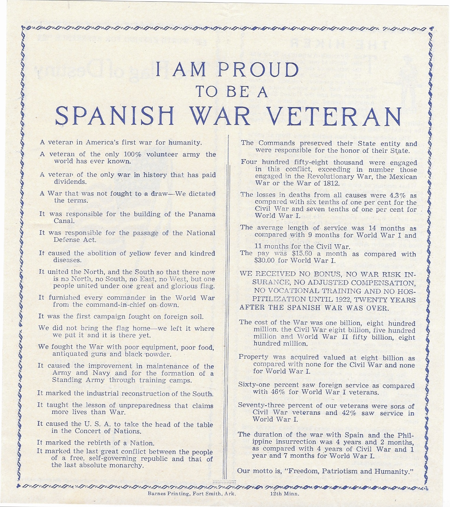 1930s A brochure for the Spanish American War Veterans organization (front and back)