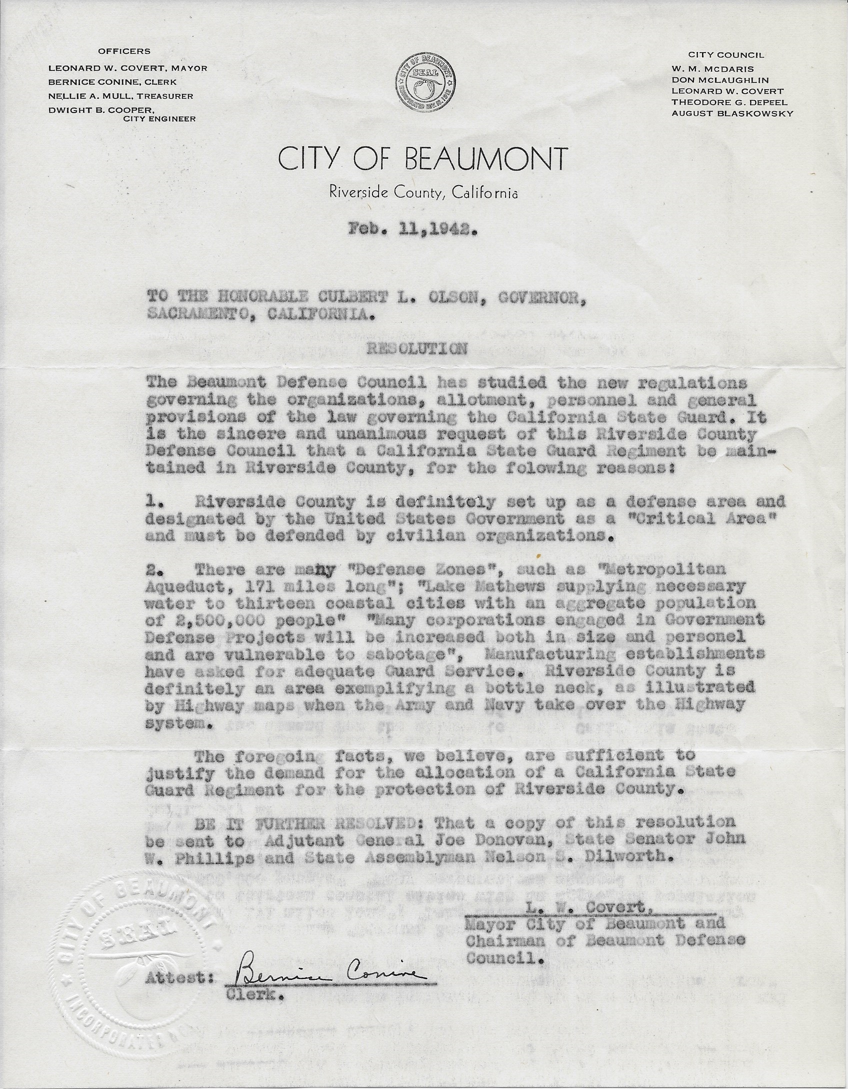 1942 (Feb 11) Resolution by the City of Beaumont to the Defense Council about the State Guard