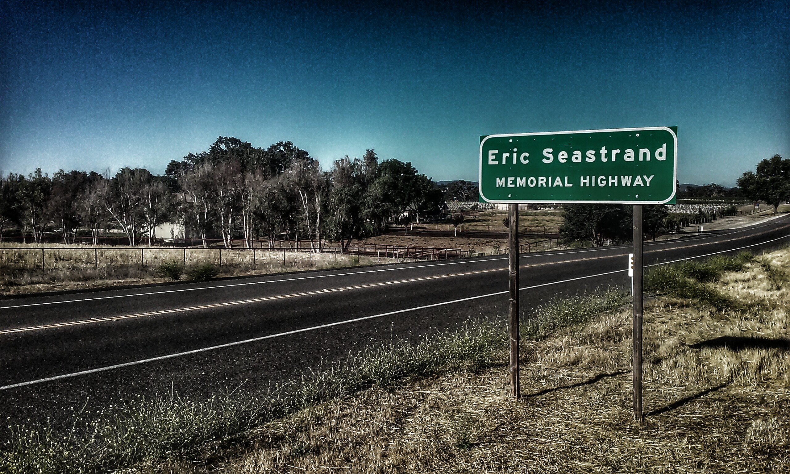 Connecting with Sturgeon’s highway is the Eric Seastrand Memorial Highway, located on State Route 46 (between Highway 1 on the coast and Highway 101 at Paso Robles). Seastand served eight years in the State Assembly until he died in office in 1990. His wife, Andrea Seastrand, won the 1990 election to take his seat and served two terms before being elected to Congress in 1994.