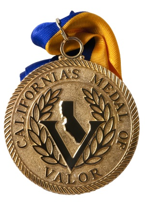 Public Safety Medal of Valor – A public safety officer (firefighter, ocean lifeguard, law enforcement officer, including a corrections or court officer or a civil defense officer, or an emergency services officer) – For extraordinary valor above and beyond the call of duty. [Gov Code 3401]